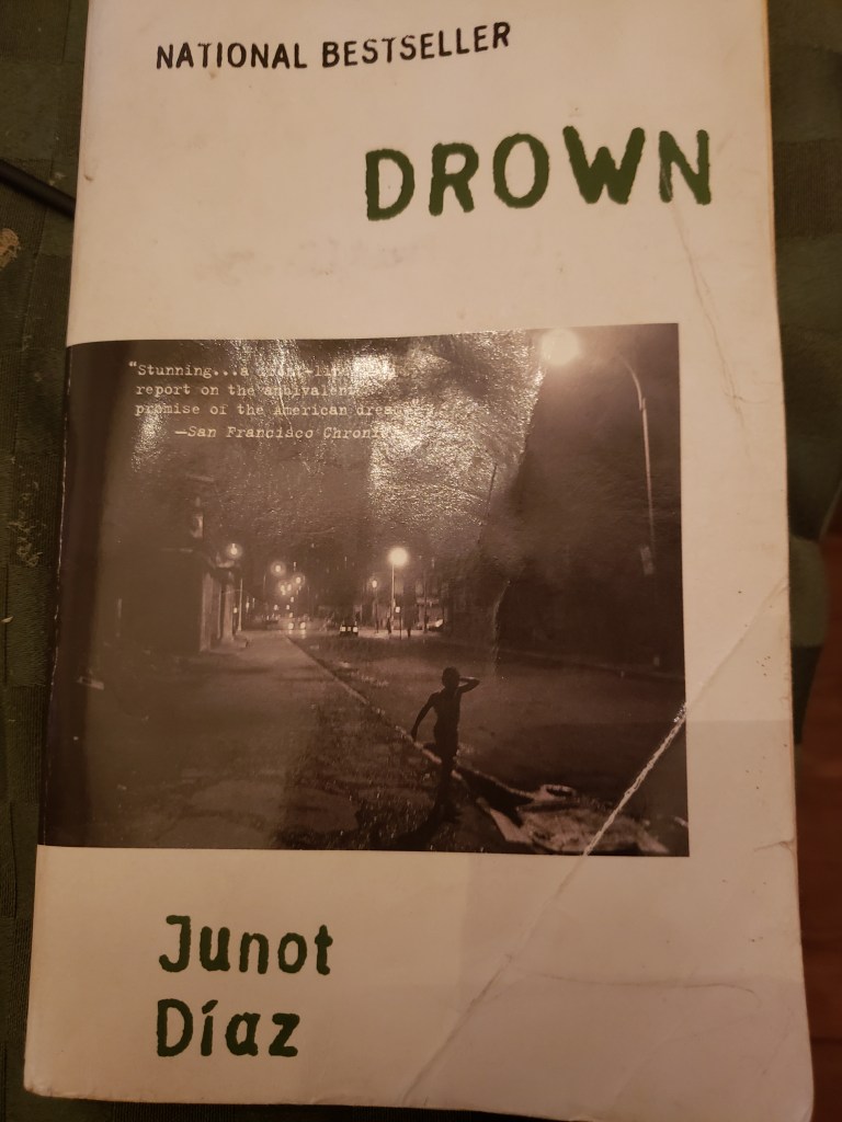 I have a Master’s degree in Spanish which means that I studied the literature of Spain, Latin America and the Caribbean in Spanish. I can still remember the mind numbing 500+ authors on my comps reading list and how even memorizing what country they were from was daunting as half of them had lived in more than one Latin American country in their lifetime. There were like four women on the list and not a single Dominican, which is maybe why when I read The Brief Wondrous Life of Oscar Wao in 2008 when Diaz won the Pulitzer for it, I totally fell in love with it. It was very different from anything I had read. It switches between life in the DR under the dictator Trujillo and life for Oscar de Leon, a chubby Dominican American boy in New Jersey who is obsessed with Science Fiction and falling in love. So it’s been twelve years since I’ve read anything by Diaz, and I came across Drown in a free library last week. It’s the first thing he published, a collection of short stories that came out in 1995.