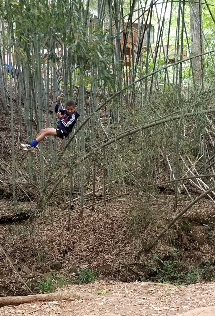 Frazier Forest: 1815 S Ponce De Leon Ave NE, Atlanta, GA 30307 (SH) If you go to the Frazier Center entrance, go up the driveway to the next parking area on the left. This is a nice little wood, very lovely, and there is a rope swing in a bamboo forest. This can be accessed by Harold St. in Lake Claire, but you can’t bring bikes into the woods. You can lock them on the street and follow the sign.
