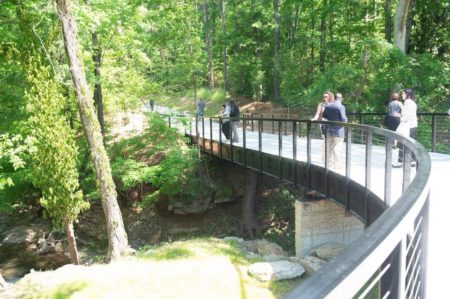Paces Mill Unit: 3444 Cobb Pkwy, Atlanta, GA 30339. We got frustrated with the lack of straightaway trail at Cochran Shoals so we came over here. If you want a long, beautiful bike ride, along a stream the whole way from one river entrance in Johnson Ferry all the way across for a 45 minute walk to Powers Ferry, this is the trail for you. The parking lot will be crowded with rafters but the trail is fine and diversely populated. If you are facing the park from the parking lot, the trail head is on the left. I will tell you there are some major hills on this trail that kicked my butt so I only made it to Bill Callahan and not all the way to Powers Ferry, but I will go back and try again. We met a family of five from Mary Lin who were doing the whole trail there and back yesterday. Kudos to you!!!! There are a lot of cool under bridges with high quality graffiti art.