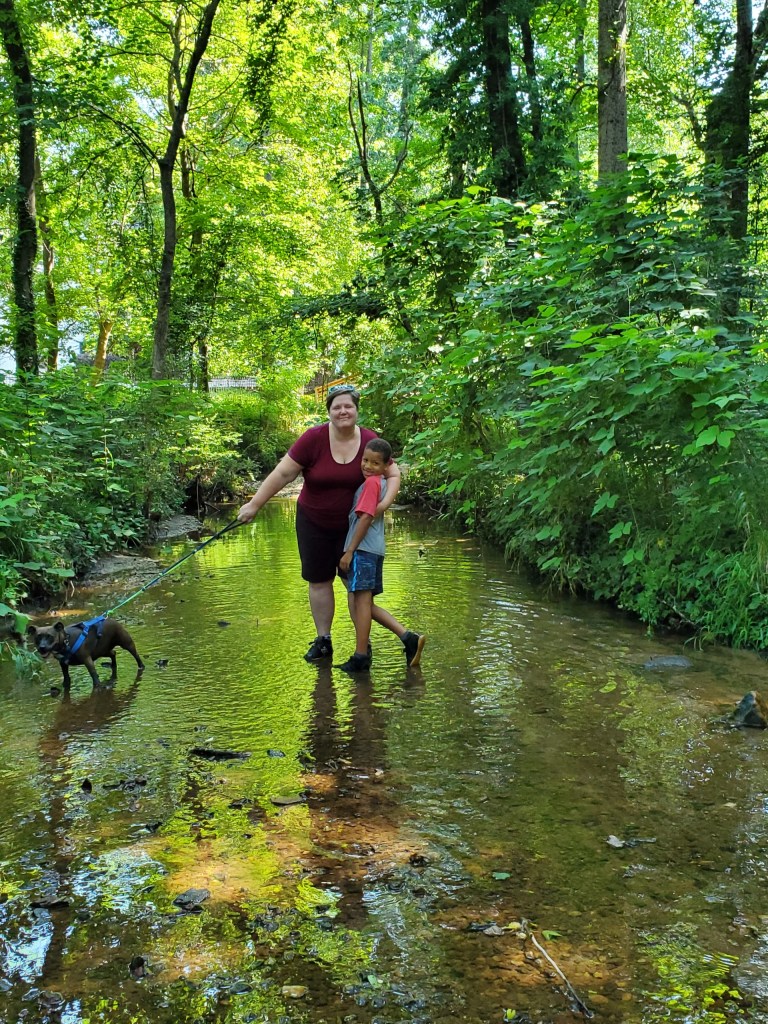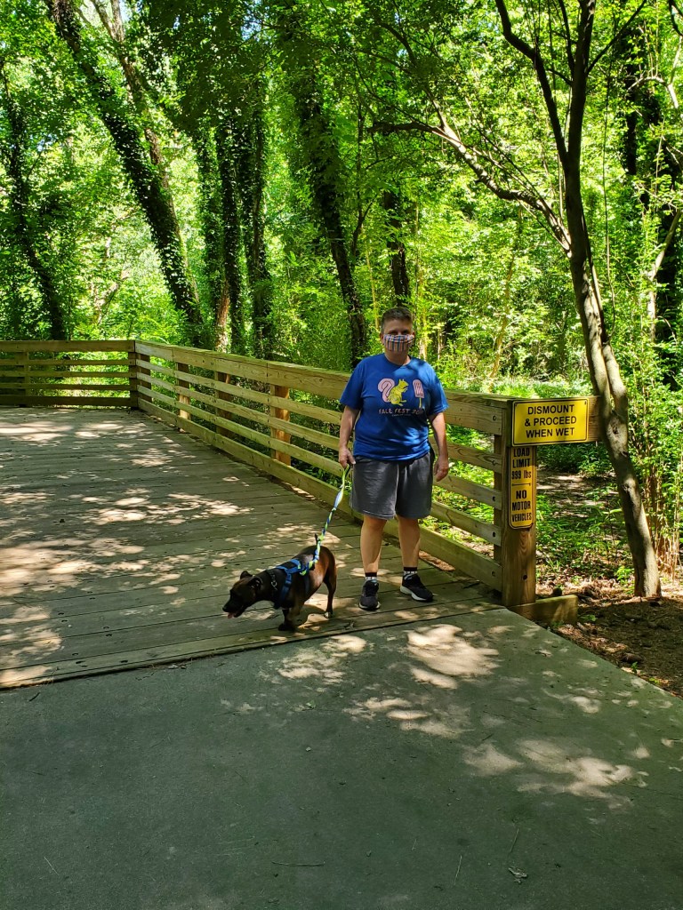 It’s called South Peachtree Creek Trail S Peachtree Creek Trail, Decatur, GA 30033, and it really is gorgeous. On a Saturday it is a titch crowded, but we just put masks on when people got near and that worked. Almost everyone was wearing masks. It’s Decatur, after all. It is shady, and there is a very pleasant boardwalk across much of it.