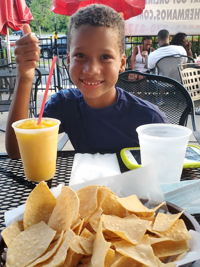 Have you all ever heard of Taqueria Los Hermanos? Well, it’s my second favorite Mexican restaurant in the whole metro Atlanta area (since Rosa Mexicana left Atlantic Station) but we rarely go to it because it’s in Tucker and they don’t have a patio. Well, they freakin have one in Lawrenceville that has a good sized patio! They block out the tables so people can’t be next to each other. There was only one other family on the patio a good 15 feet from us when we were there, and the wait staff all wore masks. The food is so good. It was like I had died and gone to heaven. I am a mole aficionada, and theirs is outstanding.